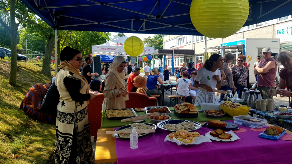 Weiterlesen: Unser Straßenfest 2021Etwa 300 Menschen besuchten das Straßenfest und genossen das schöne Wetter, ein sehr leckeres Libanesisch-Georgisches Buffet oder eine knackige Bratwurst, eine tolle Live-Musik und viele Angebote zum Mitmachen. Vor allem Kinder tobten zwischen Rollerbahn, Hüpfburg, Kletterturm und Henna-Malen.
