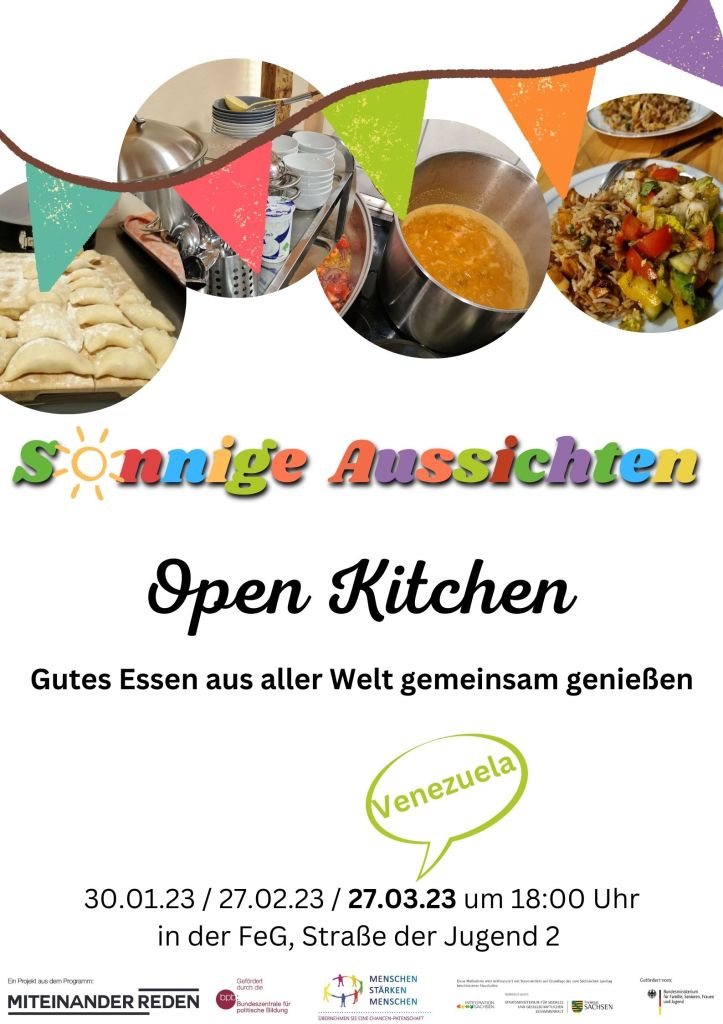 Anschließend, etwa gegen 18 Uhr, sind alle herzlich eingeladen zur Open Kitchen in der FeG, Straße der Jugend 2, es gibt venezolanische Küche