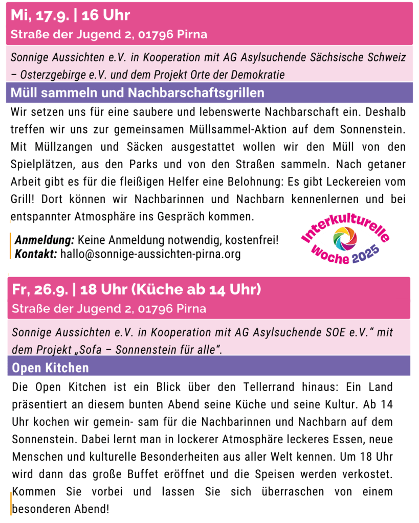 Kommt vorbei, bringt Freunde mit und erlebt mit uns zwei wunderbare Veranstaltungen voller Gemeinschaft, Austausch und guter Laune! 💛