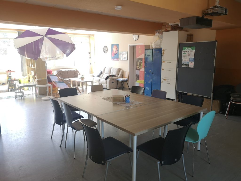 Als Treffpunkt für unseren Verein nutzen wir den Begegnungsort Sonnenfeld der AG Asylsuchende SOE e.V. Hier in der Straße der Jugend 2 finden unsere Mitgliederversammlungen statt, aber auch viele unserer Planungstreffen und Veranstaltungen, wie open kitchen, Sprachcafé oder das Straßenfest. Leider ist die Zukunft des Gebäudes und damit unser verbundener Raum ungewiss und wir sind auf der Suche nach einem langfristigen Ort, wo wir nachhaltig planen können.